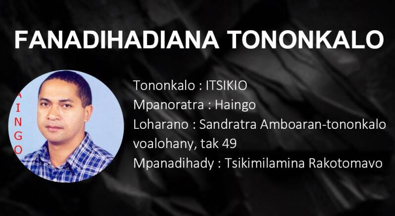 58 taona anio i Haingo ! Miara-miaina amin’ny mpiara-belona ihany koa ny asasorany ary mampita hevitra mikolo toe-panahy sahy misetra ny lala-miolika feno sampanana eto amin’ity tany diavina ity. Koa raha tojo ny fahasahiranana izay mampiferinaina àry ny tsirairay dia inona no tolo-tsaina azo aroso handaminana izany? Ny tononkalon’i Haingo notsongaina tao amin’ny Sandratra Amboaran-tononkalo voalohany tak. 49 mitondra ny lohateny hoe "Itsikio" no mandrisika ny rehetra hiaina sy hiatrika am-pitoniana ny sotasotan’ny fiainana.
