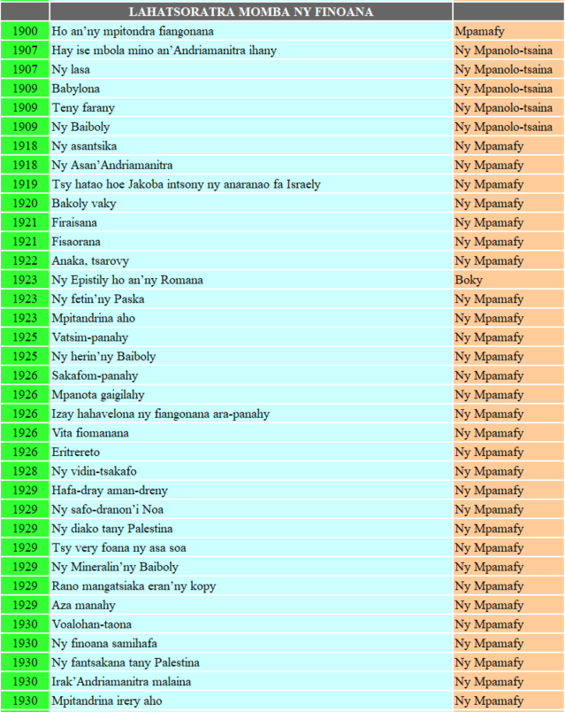 - Ny Mpamafy dia revio miseho isam-bolana navoakan’ny MPF na Mission Protestante Française. Tonian-dahatsoratra tao Rabary ny 1918-1930