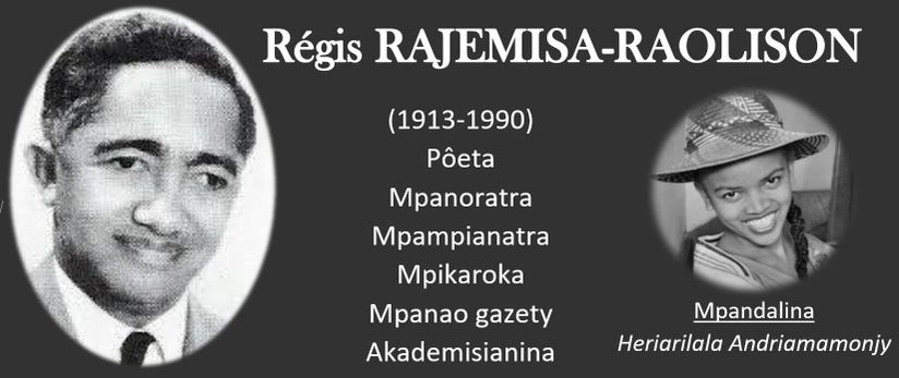 Pôeta i Régis Rajemisa-Raolison ary nanoratra tononkalo maro tamin'ny teny malagasy sy teny frantsay. Tamin'ny 1948 izy no namoaka amboaran-tononkalo amin'ny teny frantsay "Les Fleurs de l’Ile Rouge".