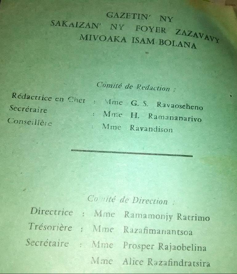 Gazetin'ny sakaizan'ny Foyer Zazavavy, 1956