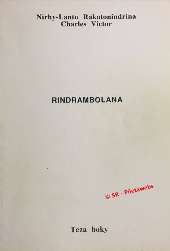 - 1996, Rindrambolana, Antananarivo/Paris, ed. Teza Boky & Nirhy-Lanto, 130 p.